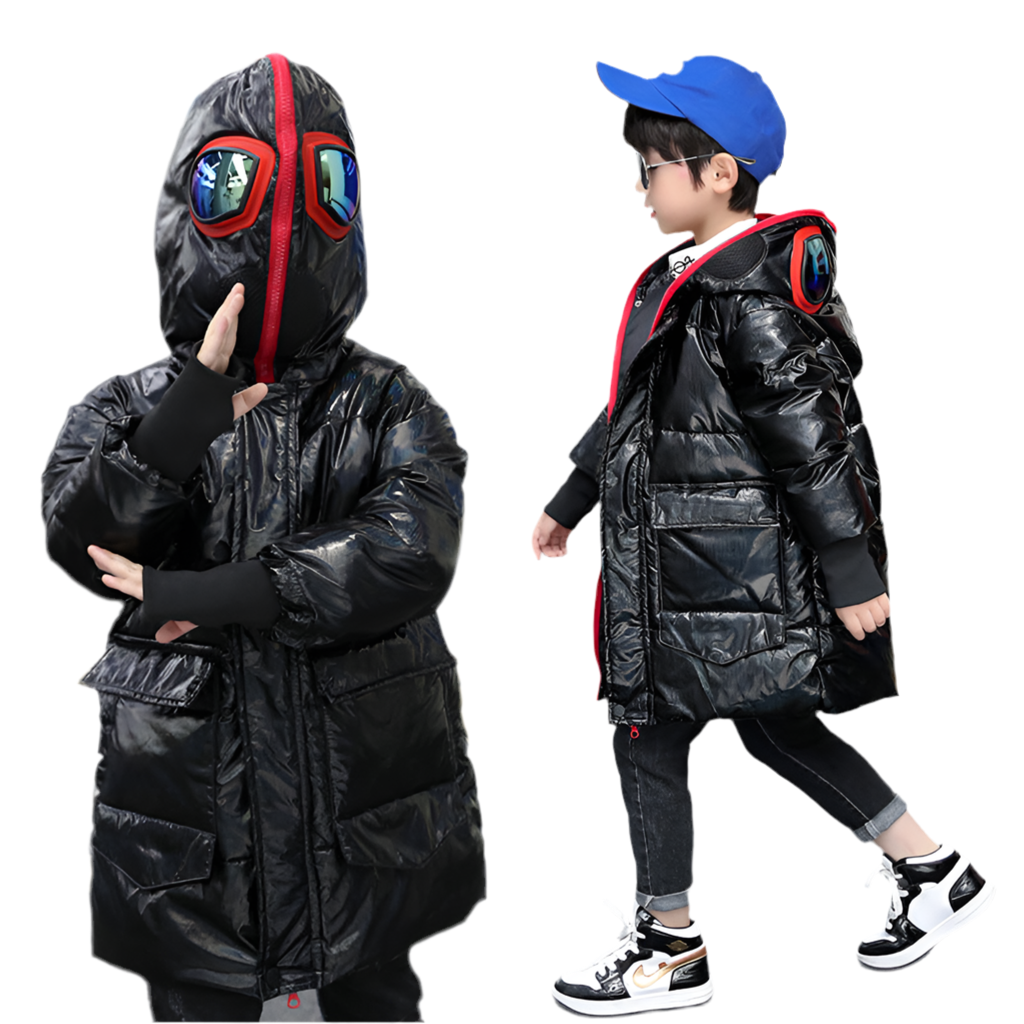 Big kids double zipper Ultraman glasses down jacket